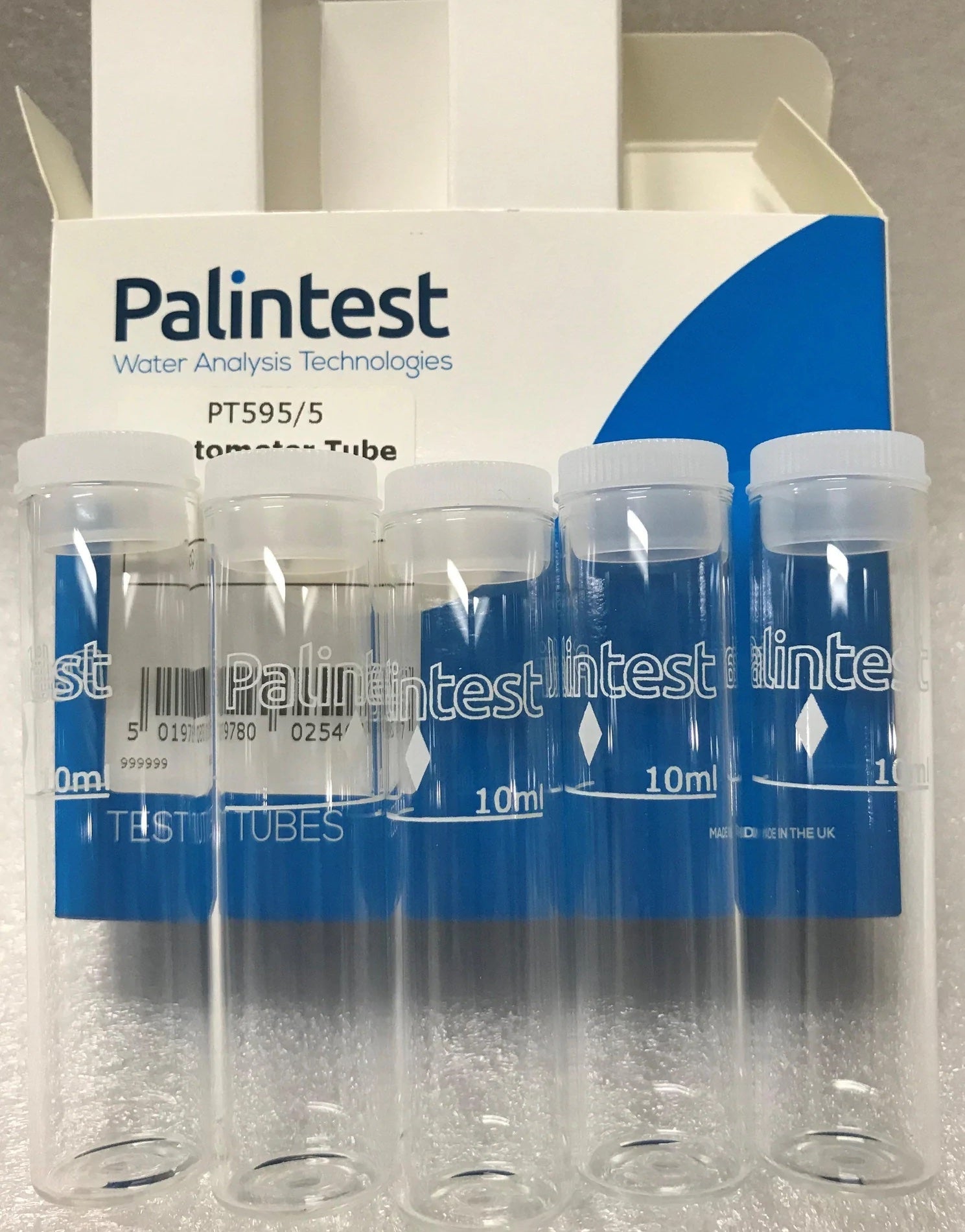 Glass, tall, round, photometer test tube. 10ml. For use in Palintest Pooltest 25 & 9. 5 per pack CPC Code: TEPT595/5