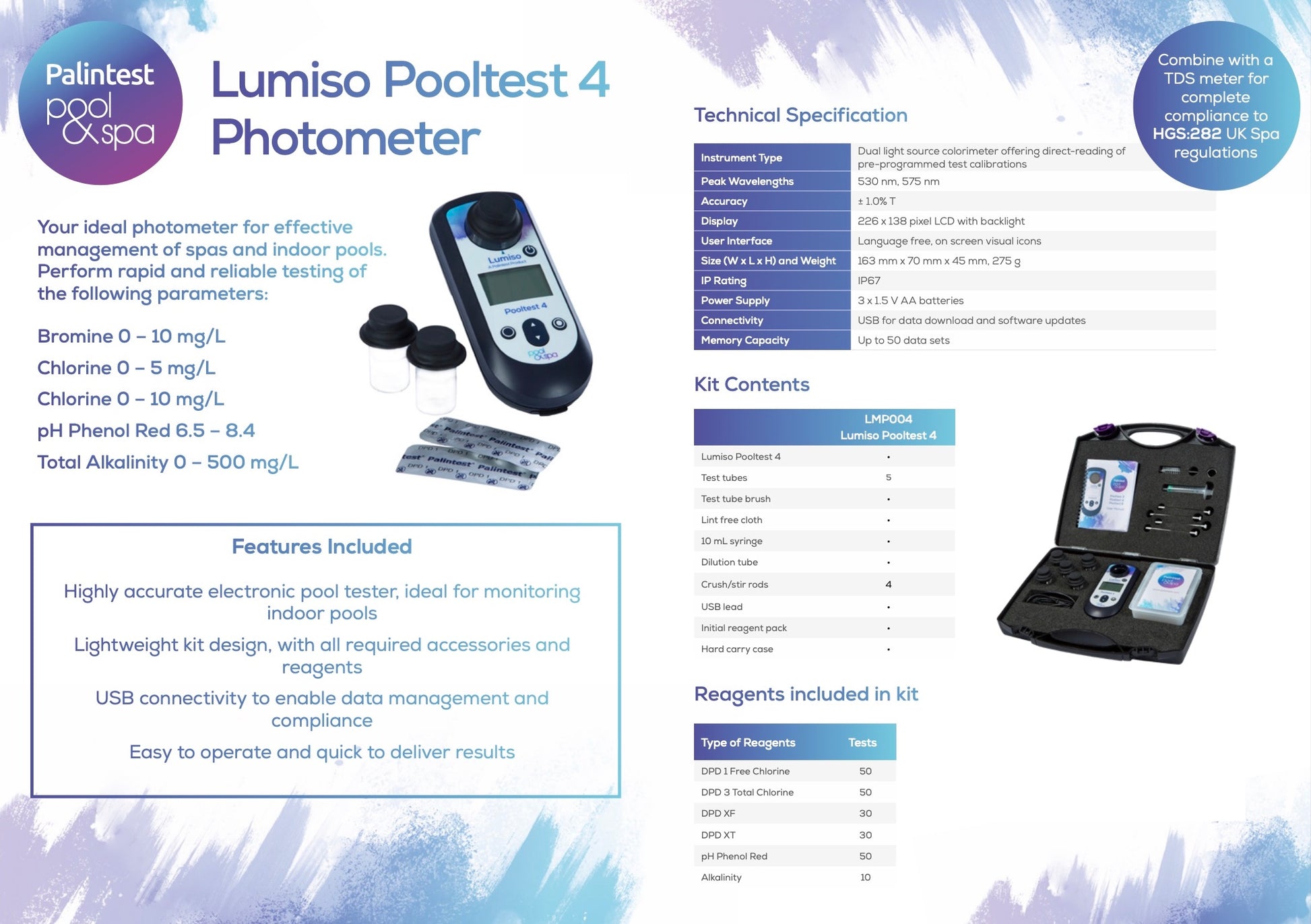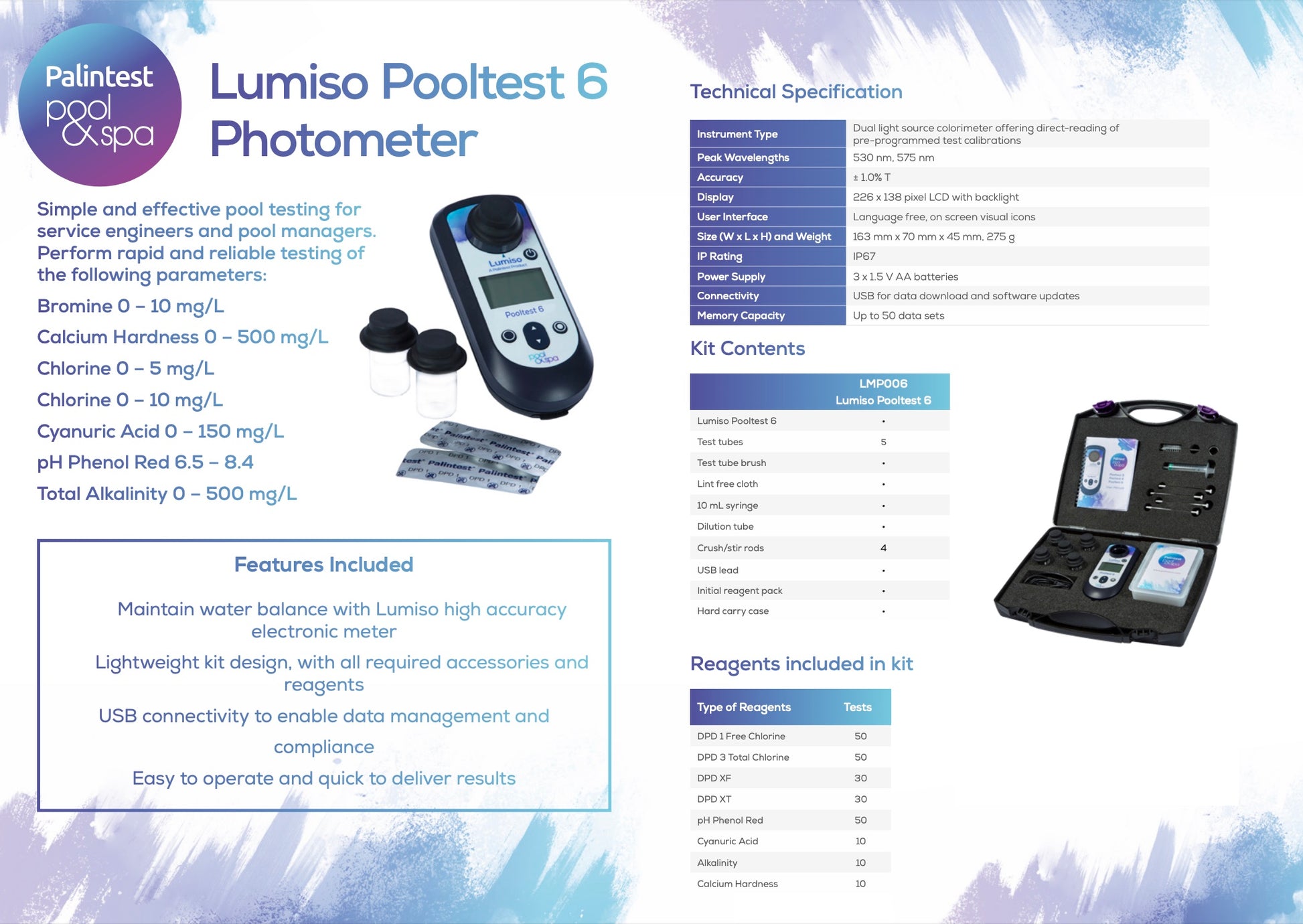 - Ideal for service engineers and pool managers
