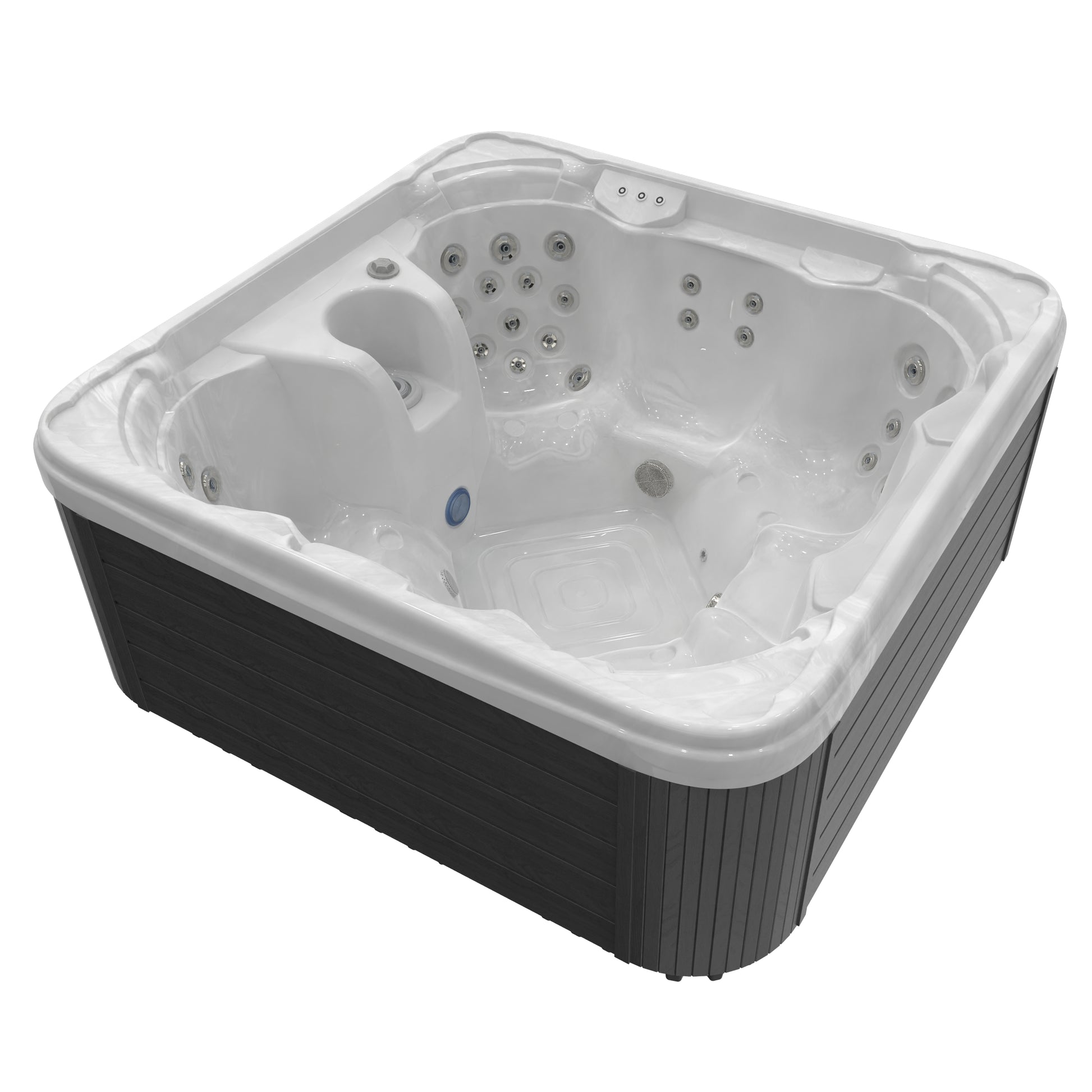 | This model is equipped with a Gecko Tamper-proof Control System which makes this tub extremely user friendly and easy to use, as well as being very reliable. It also prevents mis use by the spa user as it only comes with three buttons: two for the two pumps and one for the lights. All other controls are hidden behind the cabinet. |
